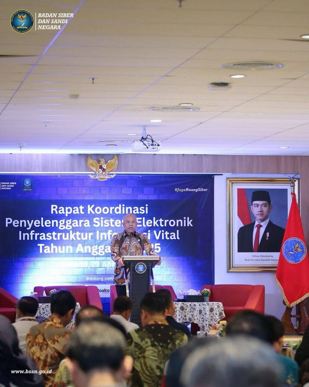 JAKARTA PUSAT – Badan Siber dan Sandi Negara (BSSN) menyelenggarakan Rapat Koordinasi Penyelenggara Sistem Elektronik Infrastruktur Informasi Vital (IIV) di Auditorium Lt. 4 Gedung Perpustakaan Nasional, Jakarta Pusat pada Selasa (24/4/2025).