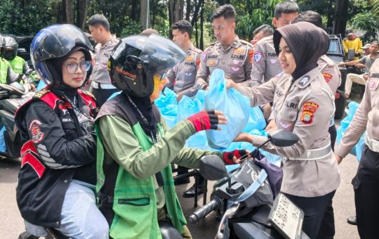 Jakarta - Polda Metro Jaya menggelar kegiatan Jumat Peduli dengan membagikan 500 paket sembako kepada masyarakat di depan Gedung Promoter...