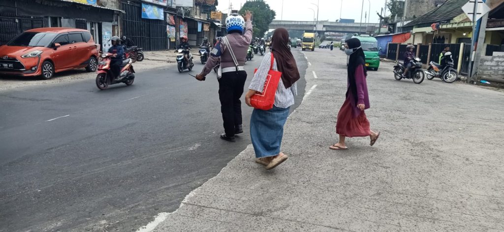 Cegah Kepadatan di Jam Sibuk, Polisi Lalu Lintas Polsek Cileunyi Sigap Atur Arus dan Bantu Warga Menyeberang