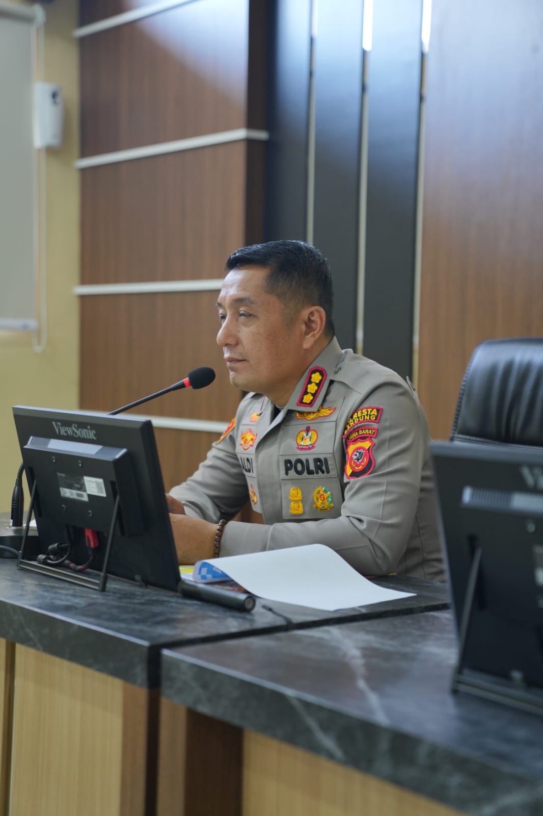 Bandung – Kapolresta Bandung Kombespol Aldi Subartono memberikan arahan langsung kepada seluruh personel Polresta Bandung dan jajaran Polsek dalam sebuah kegiatan yang digelar di ruang rapat besar Polresta Bandung, Jumat (10/4/2026). Kegiatan tersebut juga diikuti para pejabat utama (PJU), Kapolsek, Kanit Reskrim, serta seluruh personel melalui zoom meeting.