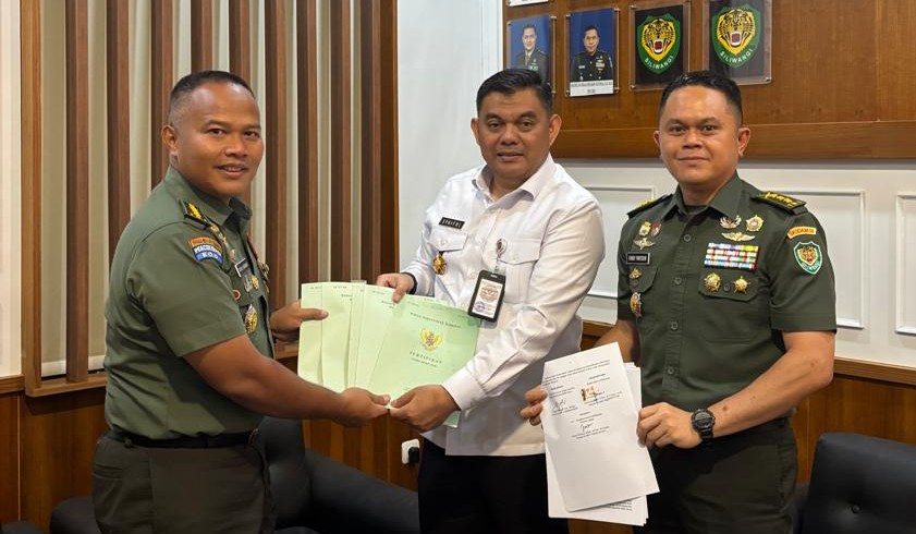 Bandung, Silpost — Kodam III/Siliwangi resmi menyerahkan aset Barang Milik Negara (BMN) berupa tanah dan lima sertifikat Hak Pakai milik SMA Taruna Nusantara Cimahi kepada Biro Umum Setjen Kemhan. Serah terima dilakukan oleh Kazidam III/Slw Kolonel Czi Trisnu Novawan, S.Sos., M.Tr.(Han)., M.Si. kepada Kabag Konbang dan BMN Roum Setjen Kemhan Kolonel Czi Syaiful Rachman, S.E., M.Han., disaksikan Aslog Kasdam III/Slw Kolonel Inf Fanny Fantouw, S.Sos., M.I.Pol., M.Tr.(Han). Kegiatan berlangsung di ruang kerja Aslog Kasdam III/Siliwangi pada Rabu (26/11/2025).
