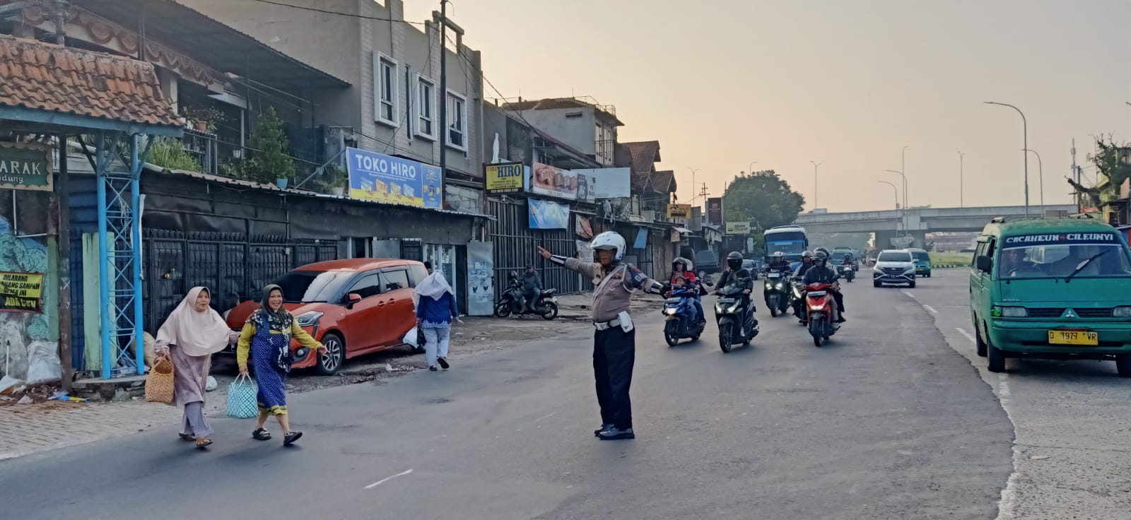 Pagi Hari di Akhir Pekan, Polantas Polsek Cileunyi Atur Lalu Lintas Pagi di Pasar, Sigap Bantu Penyeberangan