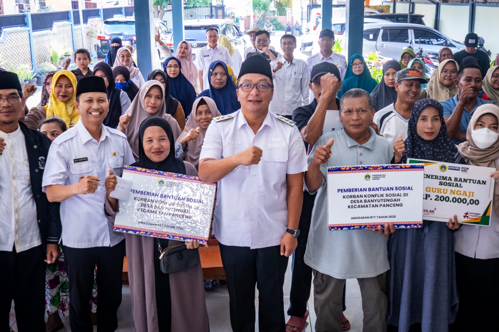 Wakil Bupati Gresik, dr. Asluchul Alif, yang hadir langsung dalam kegiatan tersebut menyampaikan bahwa bantuan diberikan berdasarkan laporan dan pengajuan resmi dari pemerintah desa kepada pemerintah daerah.