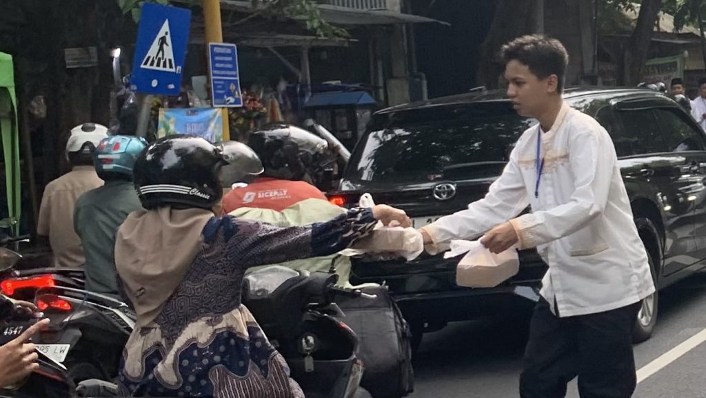 Selain kegiatan keagamaan di lingkungan sekolah, para siswa bersama dewan guru juga turun langsung ke depan sekolah di Jalan Jaksa Agung Suprapto untuk membagikan 1.000 paket takjil kepada masyarakat dan pengguna jalan yang melintas. Warga terlihat antusias dan gembira menerima takjil yang dibagikan menjelang waktu berbuka puasa.