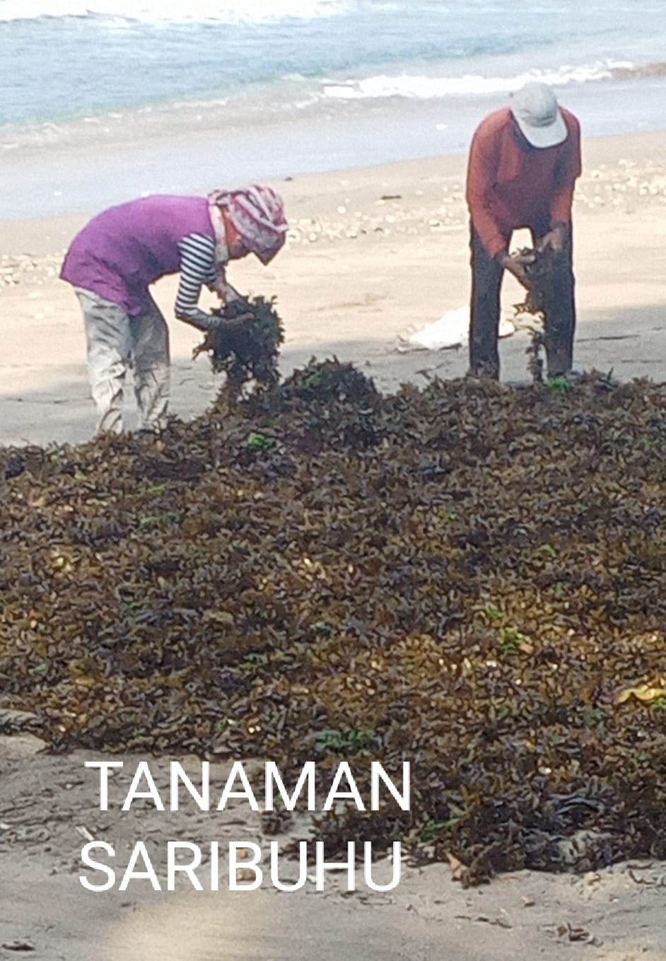 Menurut ibu – Ibu yang sedang menjemur tanamasaribuhu mengatakan bahwa tanaman ini tumbuh menempel pada karang, sedangkan tanaman saribuhu diambil pada saat air laut sedang surut, paparnya